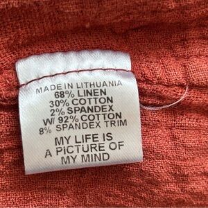 68% linen, 30% cotton, 2% spandex.