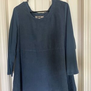 Flax blouse, muted blue. Soft fabric 3/4 sleeves.