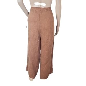 Embrace effortless comfort with these Flax brand wide-leg linen pants in a natural brown hue.