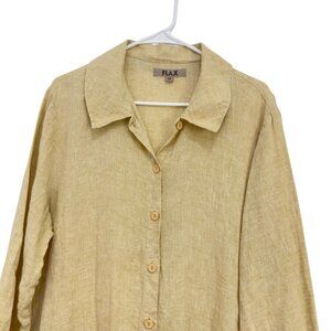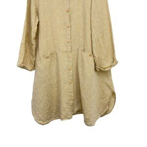 Flax Linen Button Down Shirt Dress SZ M Beige Relaxed Fit