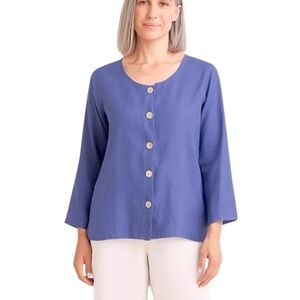 Flax Linen Button Front Jacket Top Periwinkle Blue