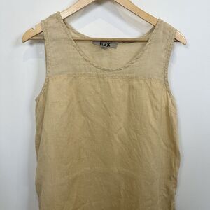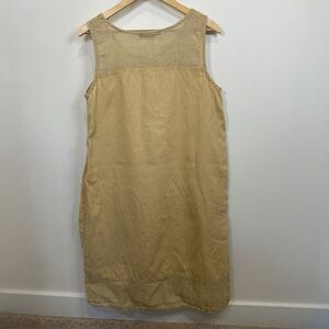 Flax Linen Dress Womens Medium Yellow Sleeveless Shift Boho Minimalist Lagenlook