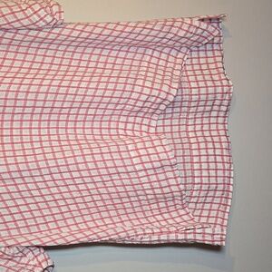 Flax Linen Gingham Checkered Boxy Short Sleeved Crew Kneck Tunic Shirt NWOT