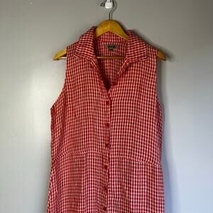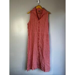 Flax Linen Gingham Maxi Dress Button Front Women's Medium Red Sleeveless Prairie