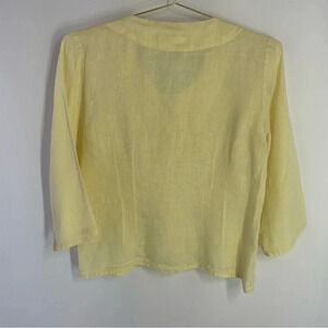Flax Linen Lagenlook Beachy Button Down 3/4 Sleeve Button Down Top