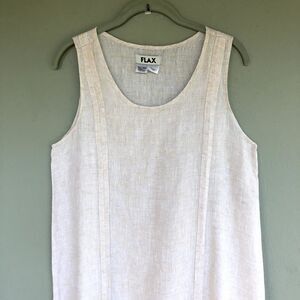Flax Linen Maxi Dress Women S Cream Sleeveless Midi Relax Side Slits Lagenlook