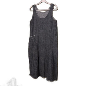 Flax Linen Midi Shift Sleeveless Dress Womens Small Brown Textured Lagenlook