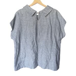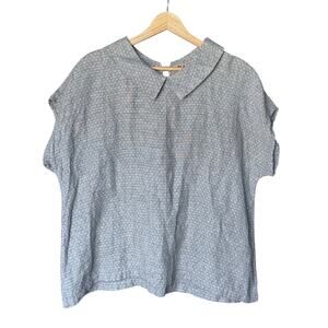Flax Linen Oversized Boxy Fit Jacquard Peter Pan Collar Starlet Top Size S