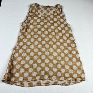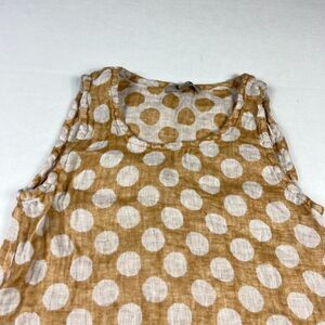 Flax Linen Top Petite P Brown Tan Polka Dot Sleeveless Lightweight Tank Minimali