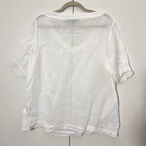 Flax Linen Top Size M White Short Sleeve V Neck Minimal Beach Coastal Lagenlook