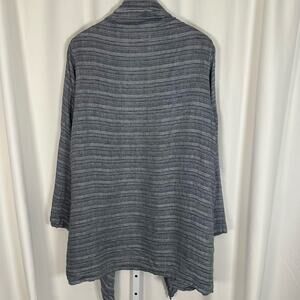 Flax Linen Women's M Zen Duster Jacket Navy Blue Stripe Oversized Lagenlook Boho