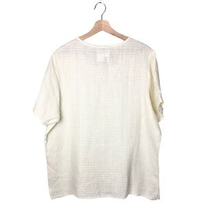 Flax Pale Yellow Square Plaid Short Sleeve Linen Blouse M