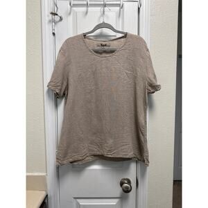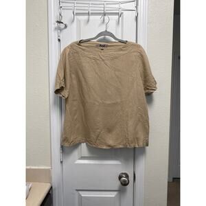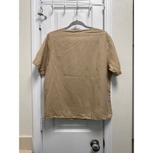 Flax Pure Linen Minimalist Lagenlook Short Sleeve Tan Shirt Set Size Medium