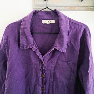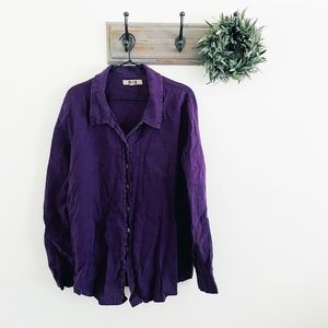 Flax Purple Linen Button Down Tunic Top M