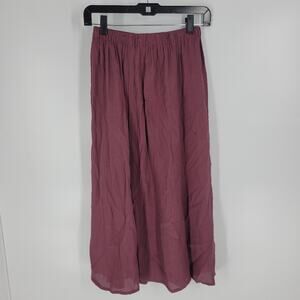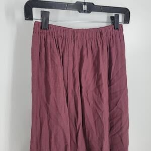Flax Red Grey Plaid Elastic Waist Midi Skirt 4-6