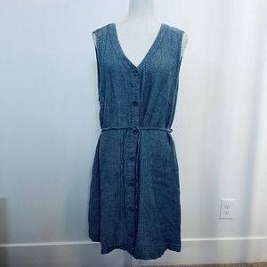 Flax Textured Linen Button Up Belted Sleeveless Dress