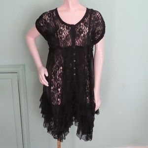 Flax Textured Linen Pants M Loose Fit Wide Leg Hem Ruffle
