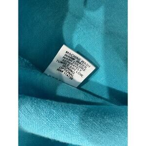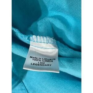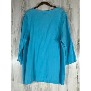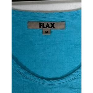 Item: Flax Top Size Medium Turquoise Blue Pleated Front Scoop Neck 3/4 Sleeve Linen