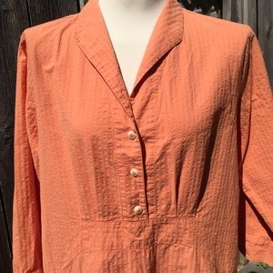 Super cute peach tone on tone pattern tunic in EUC. Great longer piece, perfect paired with capris or leggings. Pockets!