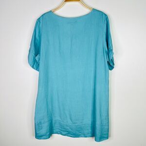Flax Tunic Dress Size Small Linen Short Sleeve Light Teal