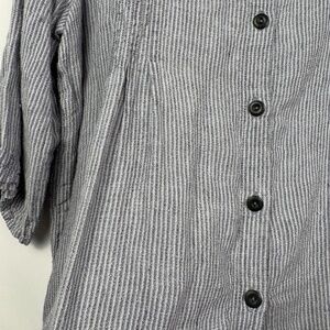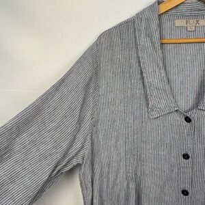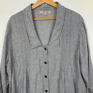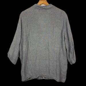 Flax Women V-Neck Collared ButtonDown Linen Top Sz L Blue Lagenlook Coast Beach