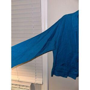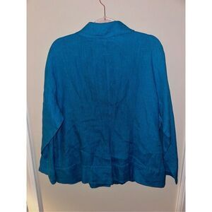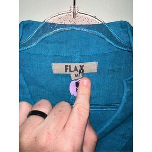 Flax Womens Blue Linen Button Top Blouse Medium