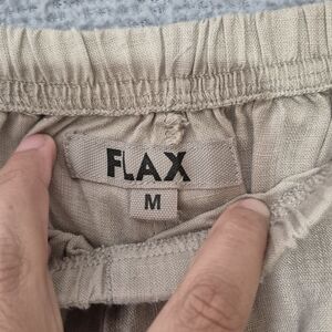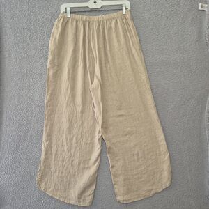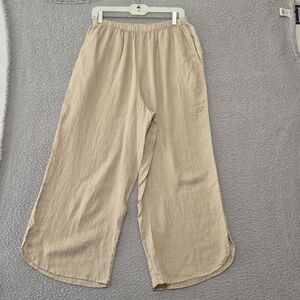 Flax Women's Elastic Waist Pull On 100% Linen Tan Wide Leg Pants Medium