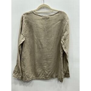 Flax Womens Lagenlook Tunic Top Long Sleeve Pullover 100% Linen Beige Size P