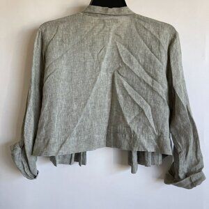 Flax Womens Linen Crop Cardigan Jacket Medium Gray Open Front Lightweight Casual