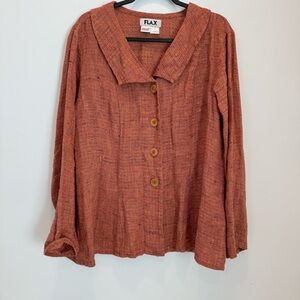 Flax Womens M Cardigan Jacket Blue long Sleeve 100% Linen