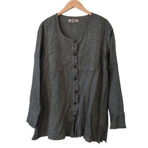 Flax Women's Size Medium 100% Linen Button Down Long Sleeve Oversized Green Top