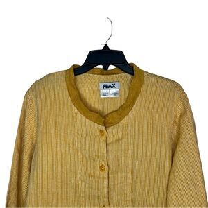 Flax Yellow 100% Linen Long Sleeve Button Front Shirt Jacket Small