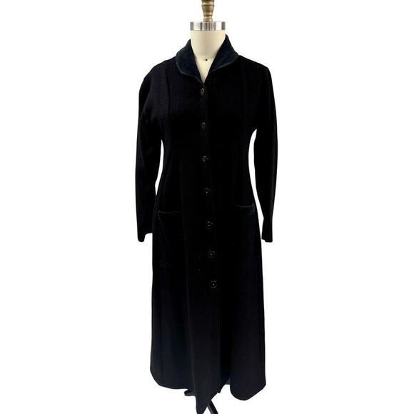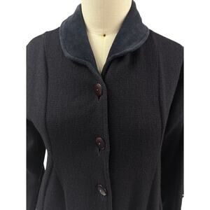Flax by Jeanne Engelhart 100% Wool Coat Cotton Velour Trim Fully Lined Sz S