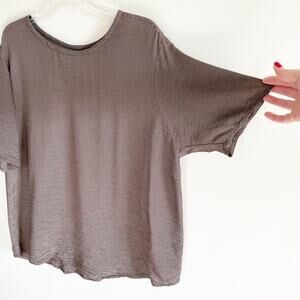 Flax by Jeanne Engelhart Women’s Taupe Oversized Pullover Gingham Check Short Sleeve Tunic Size Medium.