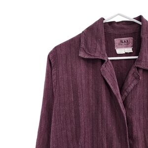 Flax by Jeanne Engelhart Women's 100% Linen Stripes Button Front Mini Dress - M