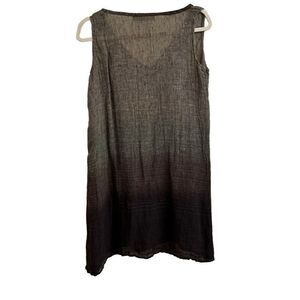 Flax by Jeanne Engelhart Linen Ombré Striped Sleeveless Dress V-neck Gray Purple Black Lagenlook