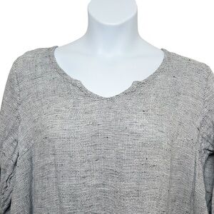 Flax linen pullover v neck long sleeve top size 1G 1X gray plaid lagenlook artsy