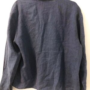 Great quality FLAX linen jacket in size medium. Two front pockets with button front. Very versatile piece and perfect for layering.