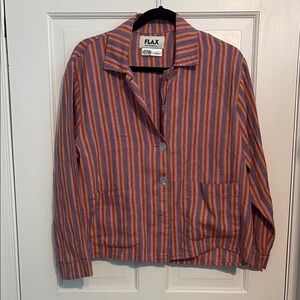 Discover the vibrant charm of the Flax blazer, featuring a striking red and orange color palette. This lightweight jacket offers a relaxed fit, perfect for casual outings. Its classic design and breathable fabric make it a versatile addition to any wardrobe.