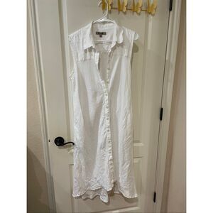 Flax women’s sleeveless button down linen midi dress size medium