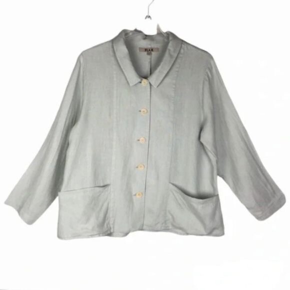 Flax Linen Lagenlook Button Front Blazer Jacket