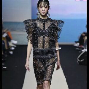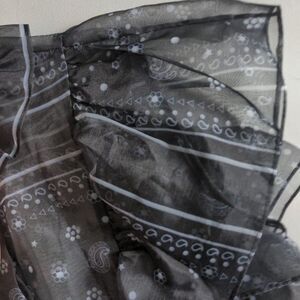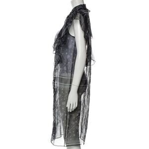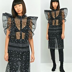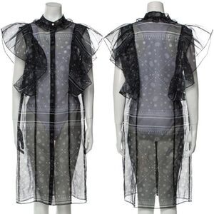 Designer Fleamadonna organza bandana print dress. Runway look. Button front. Mock neck. Oversized ruffles. Sheer black. Excellent preowned condition, no flaws!