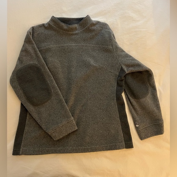 Gray mock neck fleece with elbow patches. Quechua brand, size M