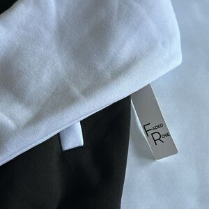 This is new with tags. The color is black and white. The fabric is 100 % polyester, fleece lined. Snap close. The chest is 42 inches, 21 flat. The length is 21 inches with 24 inch sleeves.