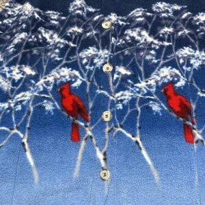 Fleece Cardinal Bird White Birch Nature Button Up Vest XL-XXL