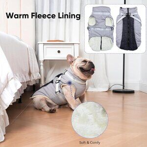 This Fleece Dog Coat with Harness is a warm winter vest jacket in black XS, designed for small dogs. Made from fleece material, this coat provides comfort and warmth for your furry companion during the colder months. The harness feature ensures secure attachment and added safety while on walks or outdoor activities. Perfect for pets needing extra protection in chilly weather, this coat is a practical and stylish choice for pet owners. Made in China, this durable and high-quality garment will keep your small dog cozy and snug.