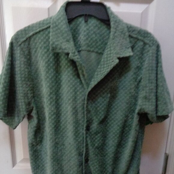 Fleece Factory, Men's Shirt, size M. Green Terry Cloth Check pattern. Measurements are: chest armpit to armpit seam 22", length is 26". Pre-owned.