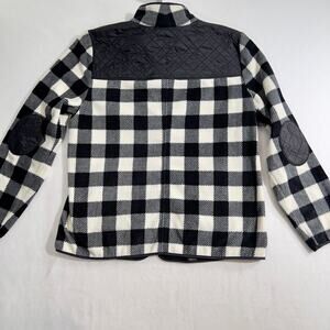 Fleece Full Zip Jacket Talbots Woman's L Zipper Pockets Quilted Elbow Patches