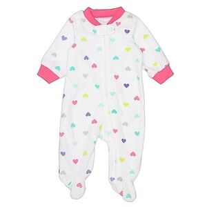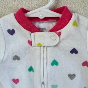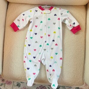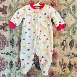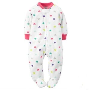 Fleece Heart Print Footed Pajamas