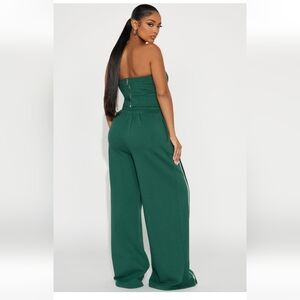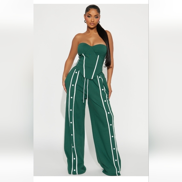 New condition. Green wide leg track pants. Relaxed fit. Top and bottoms has stretch. Size Small